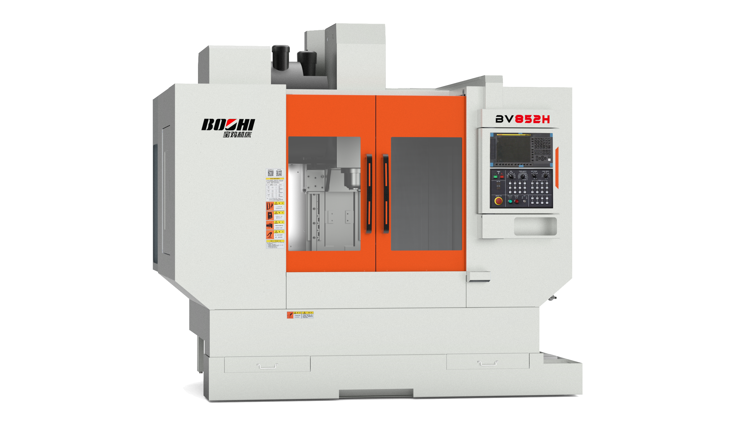 The BV Series are a fixed-column type vertical machining center with high rigidity. With an advanced modular design concept in its design, the equipment has a more compact structure and is more convenient to maintain. It adopts a large-span three-axis hardened rail system, which not only improves the stability of the equipment but also greatly extends its service life and enhances the overall performance of the equipment. The appearance design of the equipment is simple and elegant, with smooth lines, and every detail has been carefully designed and processed.